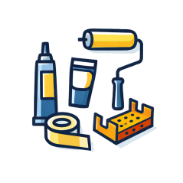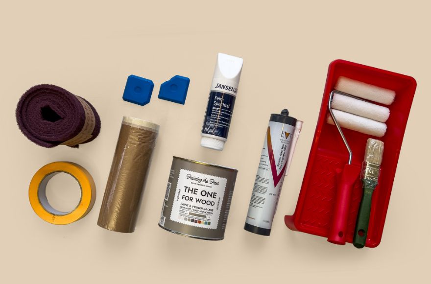 Das Finish-Set sorgt für das perfekte Endergebnis. Es umfasst Farbe, Farbroller, Pinsel, Spachtelmasse, Abdeckfolie, Schleifpapier und Kreppband – alles für einen gleichmäßigen und hochwertigen Anstrich.