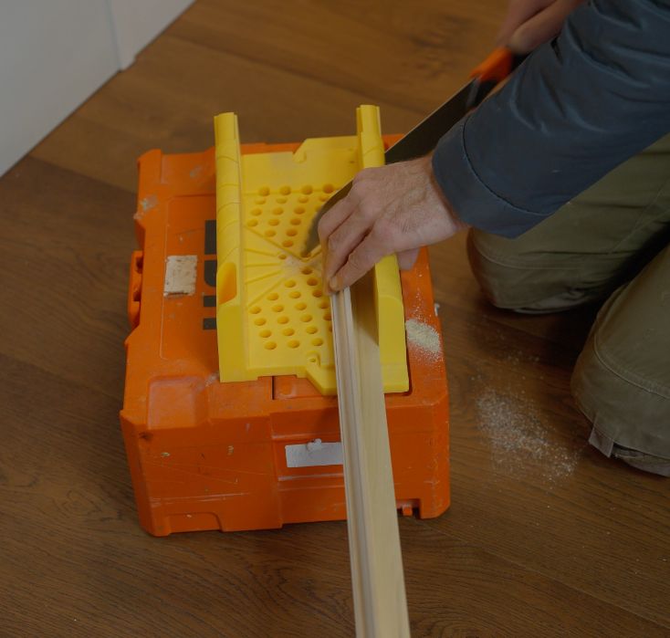 Abdeckleisten bei Ecklösungen präzise auf Gehrung zuschneiden.
